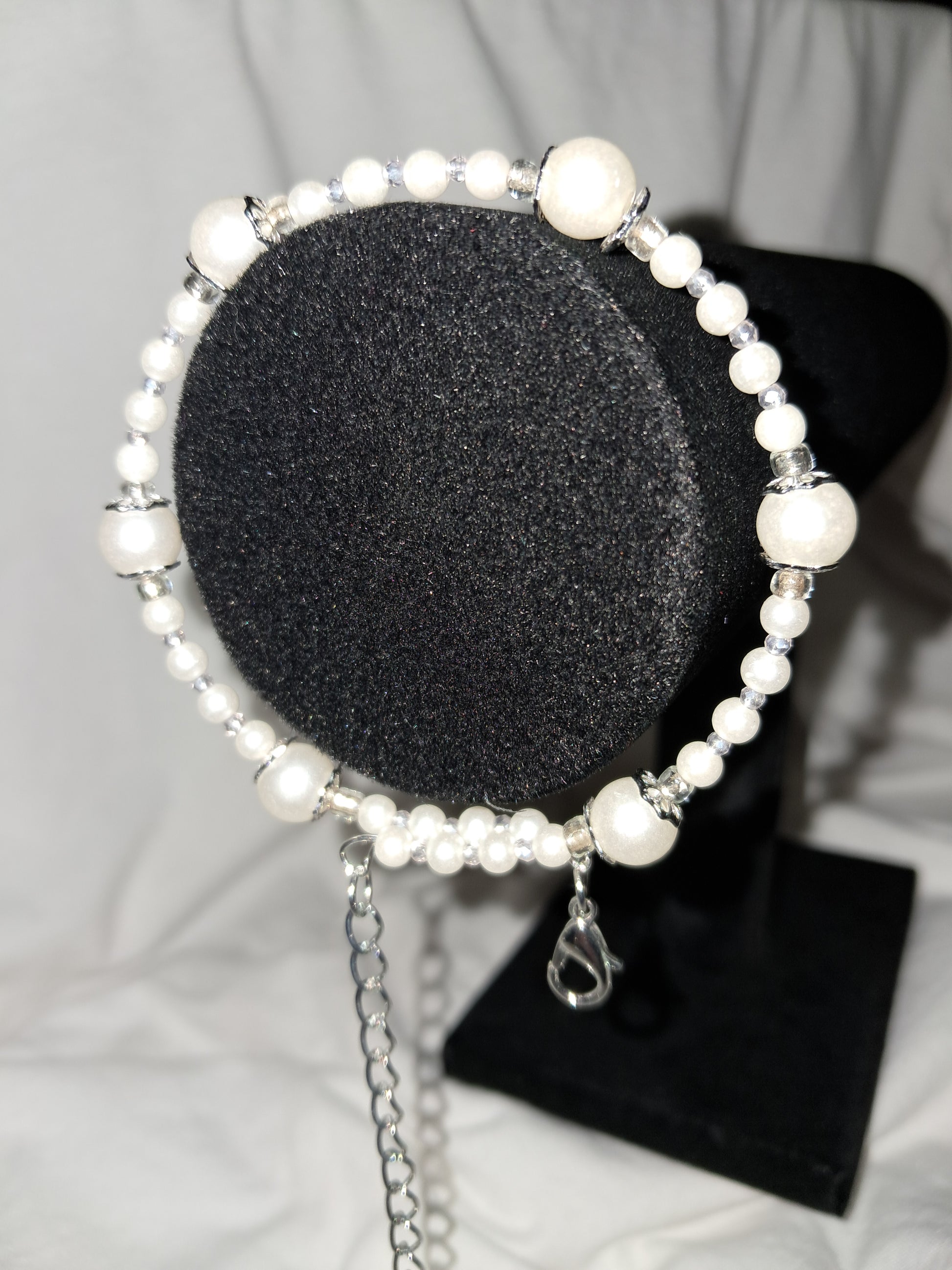 Pearl Oasis Bracelet, Stainless Steel Memory Wire, Faux Pearls